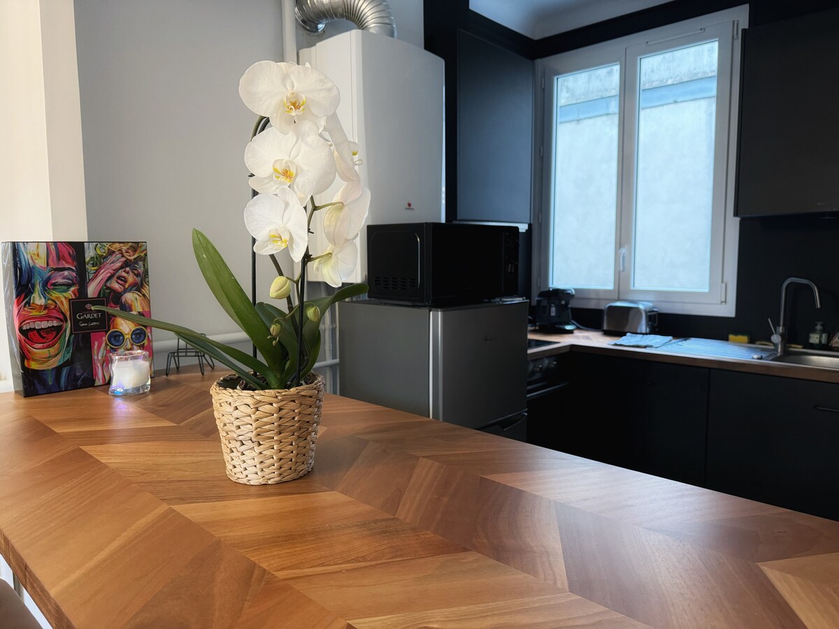 Kom och njut av en stund av flykt och avkoppling i denna charmiga lägenhet med privat avkopningspool, inte förbisedd, i centrum av Reims mellan Rue de Vesle (shopping) och den magnifika Rue Buirette. Beläget ett stenkast från Place d'Erlon, kommer du att vara nära alla bekvämligheter. Vår lokala producents champagne väntar på dig i det coola! Observera: inga fester, inga kvällssammankomster, kamera vid ingången till lägenheten som kontrollerar antalet gäster som kommer in.