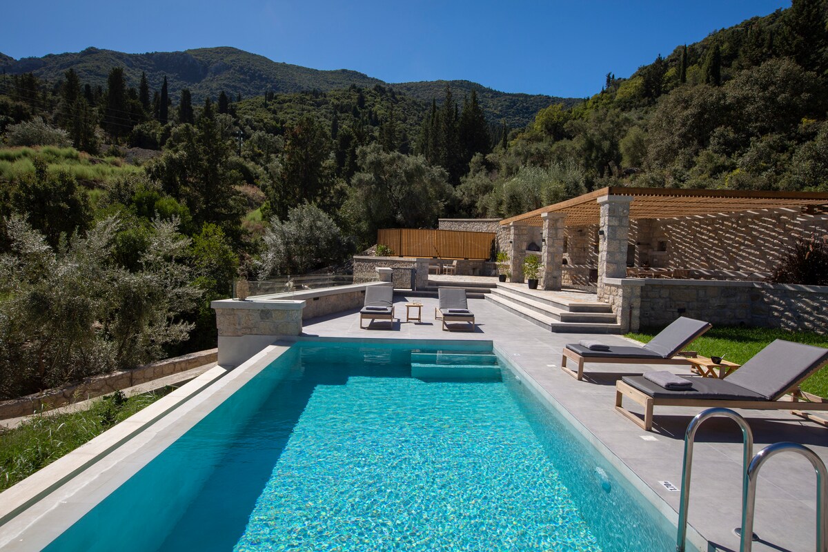 Orraon lyxvilla Lefkada - Panoramablick och pool