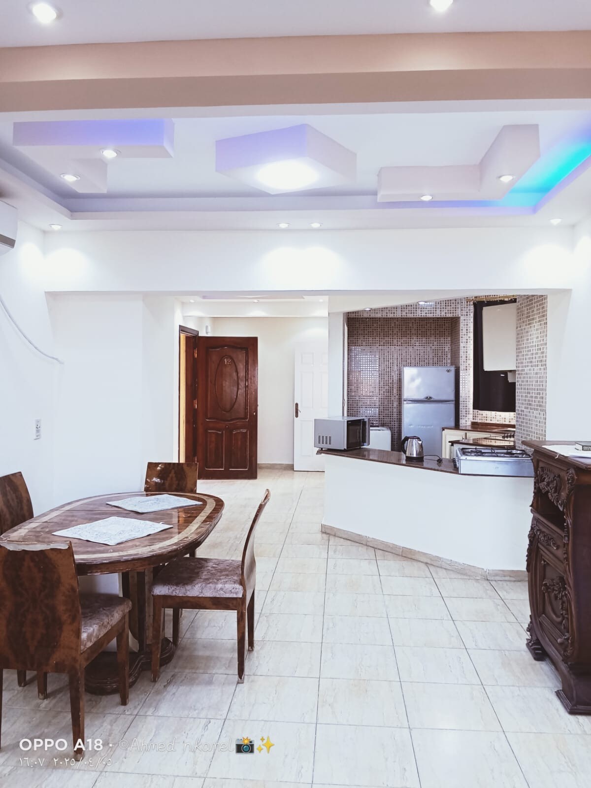 Chalet (3) sovrum (2) badrum, reception, matsal, fullt utrustat kök Stugan ligger på översta våningen, avståndet från stugan till havet är (6) minuters promenad, du kan åka bil för att spara tid, stugan har två rum och en reception, luftkonditionering, smart kontroll: genom Alexa-systemet kan du styra belysning, luftkonditionering och elektriska apparater med enkla röstkommandon. Ställ in lämpligt belysningsläge för din kväll med ett ord. Det finns gratis Wi-Fi, elektriska apparater, ett 390-liters kylskåp, en 4-flam naturgasspis, en 8-kilo superautomatisk tvättmaskin, en 55-tums platt-TV och en elektrisk värmare.
