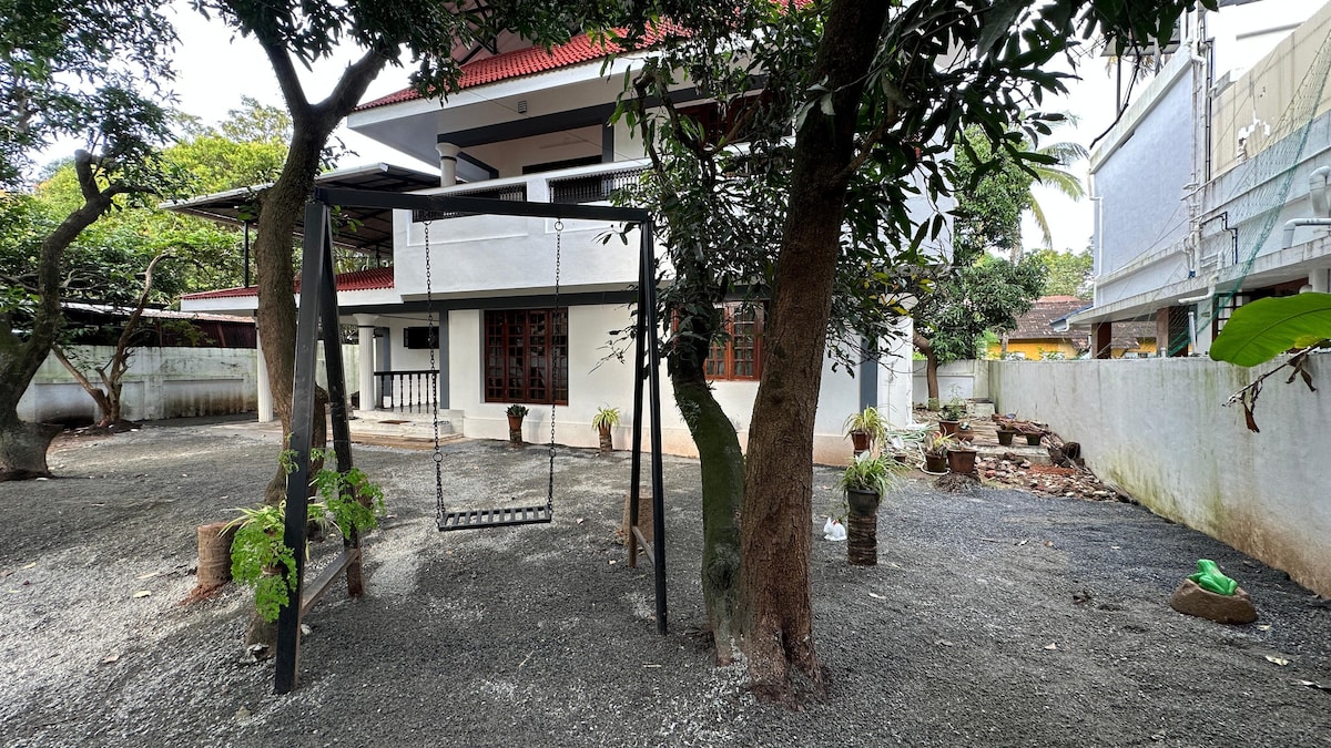 Välkommen till mitt lugna och mysiga 2BHK-gästhus, med fullständig komfort och avskildhet, undangömt i ett lugnt område men ändå centralt beläget i Ernakulam City. Ursprungligen avsett för mina personliga gäster, men nu är det endast öppet för familjer och väluppfostrade gäster. Boendet ligger på översta våningen i min privata trevåningsbyggnad och erbjuder en bekväm vistelse. Ett sovrum är luftkonditionerat och två balkonger ger bra naturligt ljus och ventilation. Det är obligatoriskt att dela KYC-information före incheckning