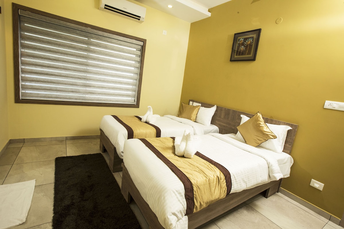 Denna Premium-lägenhet med 2 sovrum ligger i ett mysigt lägenhetskomplex. Lämpligt för NRI:er, besökare till patienter på Amrita Hospital och Aster Hospital. Bara 10 minuters bilresa från Lulu och 5 minuters bilresa från Amrita Hospital. Närmaste tunnelbanestation är Edapally – 2,5 km Kan också enkelt nås från CUSAT och Kalamassery North. Bekvämligheter- • Fullt utrustat kök med spis och kamin • Tvättmaskin med separat torkområde • Vardagsrum med smart-TV • Gratis WiFi med hög hastighet • Vaktmästare på jour