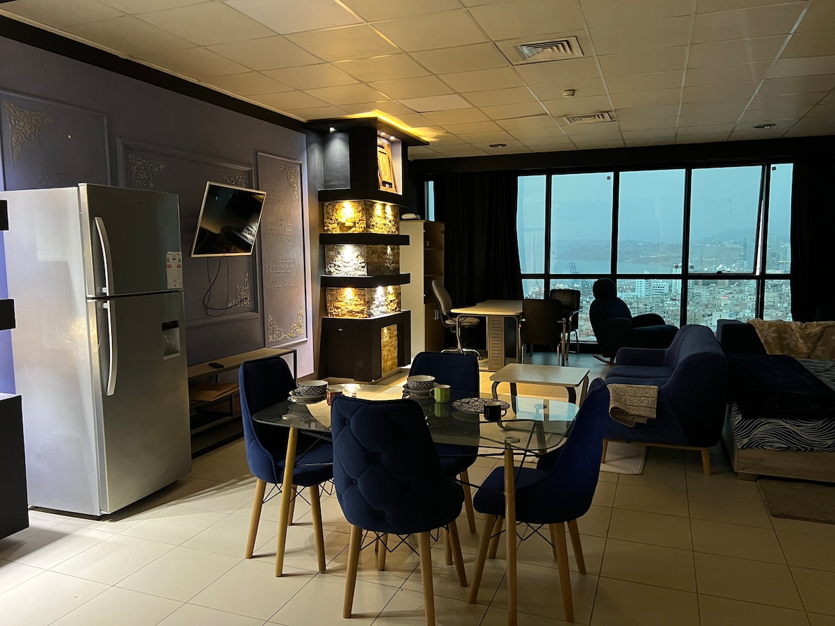 mycket fin lägenhet hög standard central luftkonditionering mycket väl utrustad säker vakt 10 MINUTERS promenad från stadens centrum ligger i det ikoniska området Oran Gambetta med utsikt över havet är hamnen i Oran allt i närheten närbutik