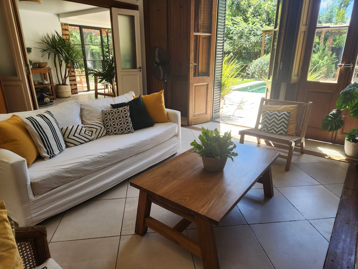 Om du gillar att laga mat och vara utomhus är vårt hus perfekt för dig. Bottenvåning: Trädgård med pool och poolbad; utomhusdusch; stor galleri med grill; spis och grill; superkomplett kök med integrerad diskmaskin med ett bekvämt vardagsrum och matsal; toalett. PA: Det finns 3 sovrum; 2 fulla badrum och en uteplats med skugga. Parkering för 3 bilar. Kapacitet för 6 gäster (fråga om möjligheten att lägga till gäster) Trädgårdsmästare och poolskötare kommer en gång i veckan