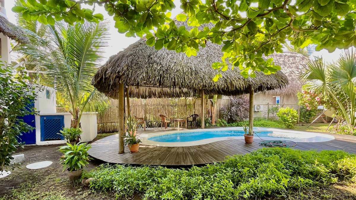Kom och koppla av och njut av vår söta casita med frodig privat trädgård och uteplats på Bonsai Bungalows. Vi har designat och handgjort mycket av vårt hem själva från möblerna till möblerna och med allt du behöver för den perfekta avkopplande strandsemestern. I huset finns ett välutrustat kök, matplats, dubbelsäng, badrum och luftkonditionering. Njut av din egen privata inhägnade tropiska trädgård med hängmatta och loungingområde.
