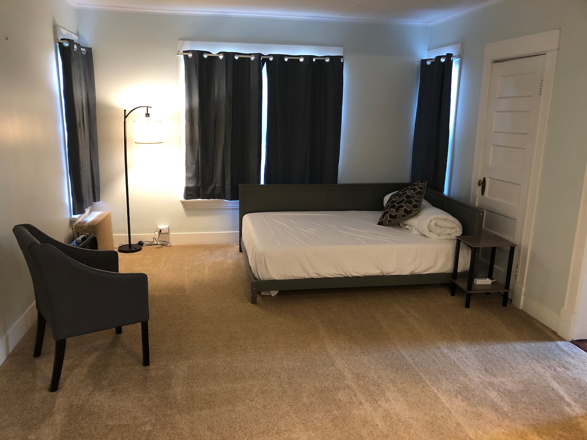 1800-talets lada som var ursprunglig lada till guvernör Yates Mansion — som nu rymmer en andra våning lugn, pittoresk 400 kvadratfot "öppen planlösning" studio. Egen utomhusdäck, parkering utanför gatan. Massor av karaktär inklusive shiplap sidospår på väggar och tak, och gamla trägolv. Fullt utrustat kök med kylskåp i full storlek, gasspis, mikrovågsugn, brödrost, kaffebryggare, tallrikar, bestick, kastruller och stekpannor. Fullt badrum med mindre dusch. Queen size-säng.