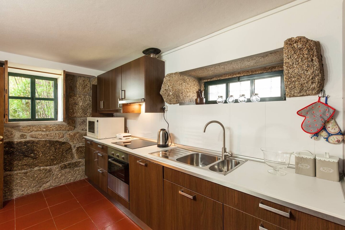 Hus med 3 sovrum (1 queensize-säng vardera), 2 badrum (1 av dem en-suite), fullt utrustat kök och utomhus fritidsområde med pool. En stor höjdpunkt i detta hus är landsbygdens atmosfär, utomhusutrymmet och läget, en fridfull plats vid portarna till staden Braga och på vägen till Gerês. Perfekt för par och familjer där du kan sova mysigt vid lukten av trä och ljudet av den omgivande naturen. Deras barn och deras djur har ledigt utrymme att springa och leka i vildmarken.