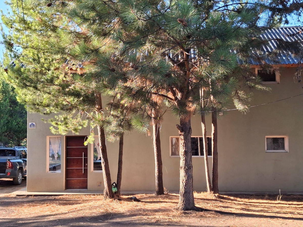 Vi inbjuder dig att njuta av vårt patagoniska loft, beläget på bottenvåningen, utan trappor att komma åt men med ett trädäck över en vacker uteplats. Den har 1 sovrum med 1 dubbelsäng och 1 enkelsäng, kök, vardagsrum, badrum och tvättstuga. Vi erbjuder en spis för att njuta av vintern, en stor trädgård, kylskåp, gasvärme, kök, tvättmaskin, Smart TV med DirectTV och WiFi. Du kommer också ha halv täckt utrymme för att lagra 1 fordon.