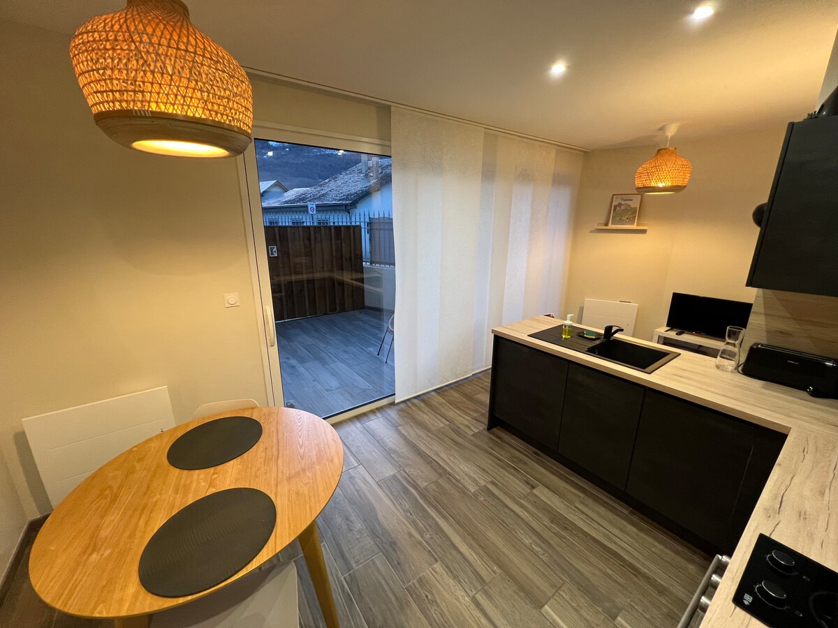 En härlig studiolägenhet på bottenvåningen i ett familjehus, centralt beläget bara 2 minuters promenad från centrum av gamla stan i Luz-Saint-Sauveur. Bekväm säng med kvalitetslakan och handdukar tillhandahålls. Liten privat trädgård med bord och grill . Privat parkering. Vi är en enkel bilresa till Tourmalet, Luz Ardiden och Gavarnie. Studion inspekteras och klassas 3 stjärnor av Meuble de Tourisme France.