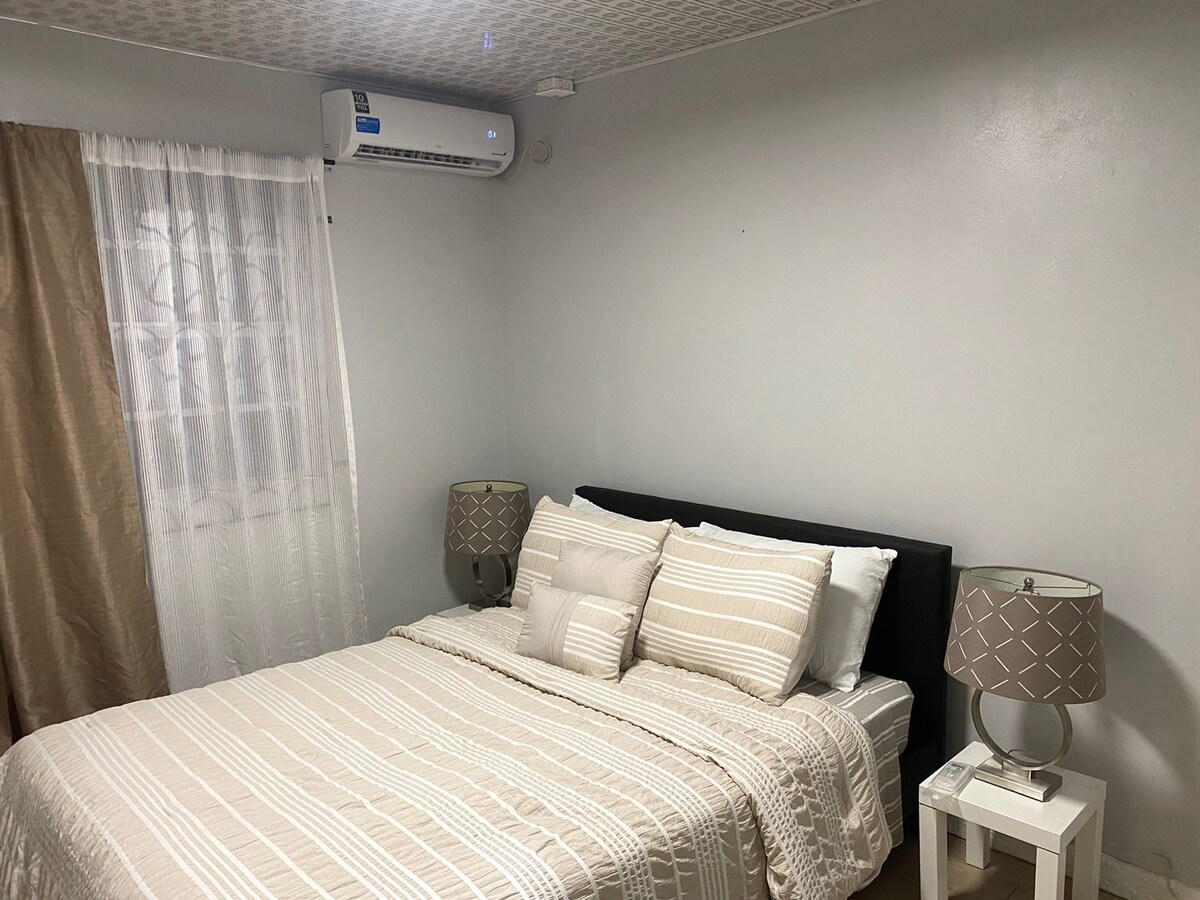 Koppla av i denna rymliga 3BR/2.5BA lägenhet bara 9 minuter från National Stadium och 25 minuter från Georgetown. Perfekt för familjer, grupper och CPL-fans, denna moderna enhet har luftkonditionering, Smart TV, höghastighets Wi-Fi och en jacuzzi. Njut av total avskildhet, gratis parkering, flexibel incheckning och en valfri flygplatstransfer. Beläget i ett lugnt, utvecklande område nära butiker, restauranger och huvudvägar för enkel tillgång till allt East Bank Demerara erbjuder.