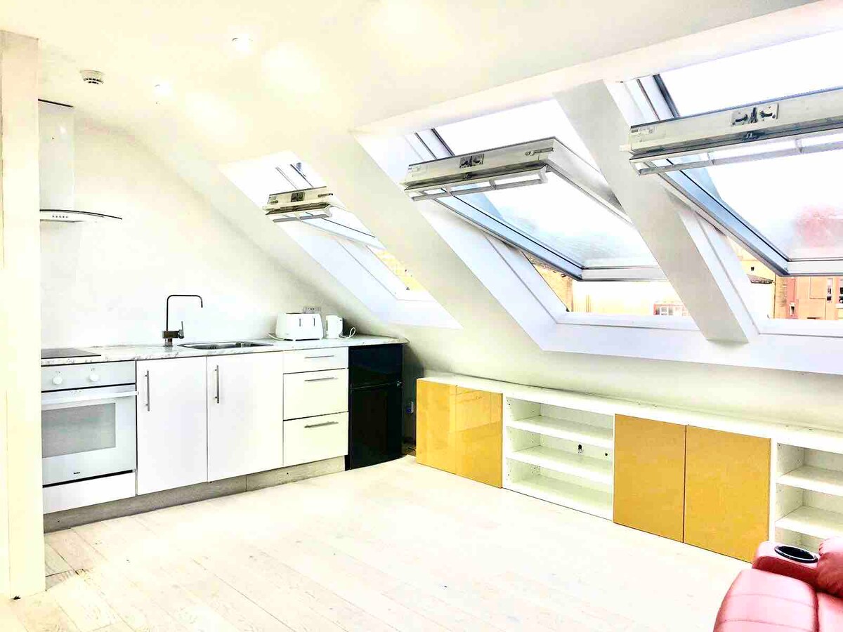 Fantastisk, privat och luftig vindsvåning i stadens centrum