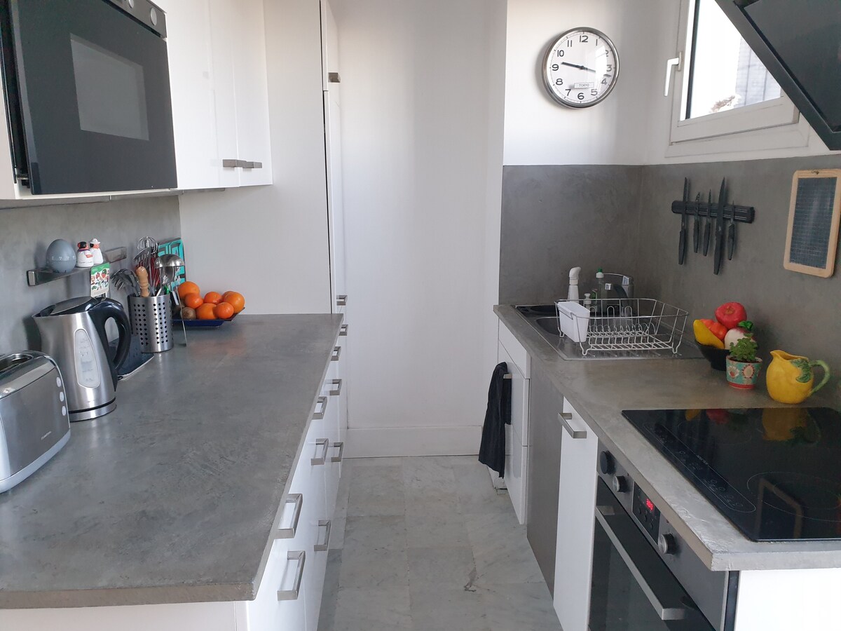 Perfekt beläget i hjärtat av palavas, några steg från stranden och butiker, med en härlig utsikt över kanalen och båtarna. Huset är en smart etikett av komfort och charm, med ett ljust vardagsrum med amerikanskt kök, öppning till terrassen, 4 sovrum, 2 badrum med dusch, 2 toalett, luftkonditionering, vacker terrass med lugn vegeterad trädgård. Gamla stan, butiker och underhållning, 5 minuters promenad, vackra stränder 10 minuter. Glöm din bil under semestern!