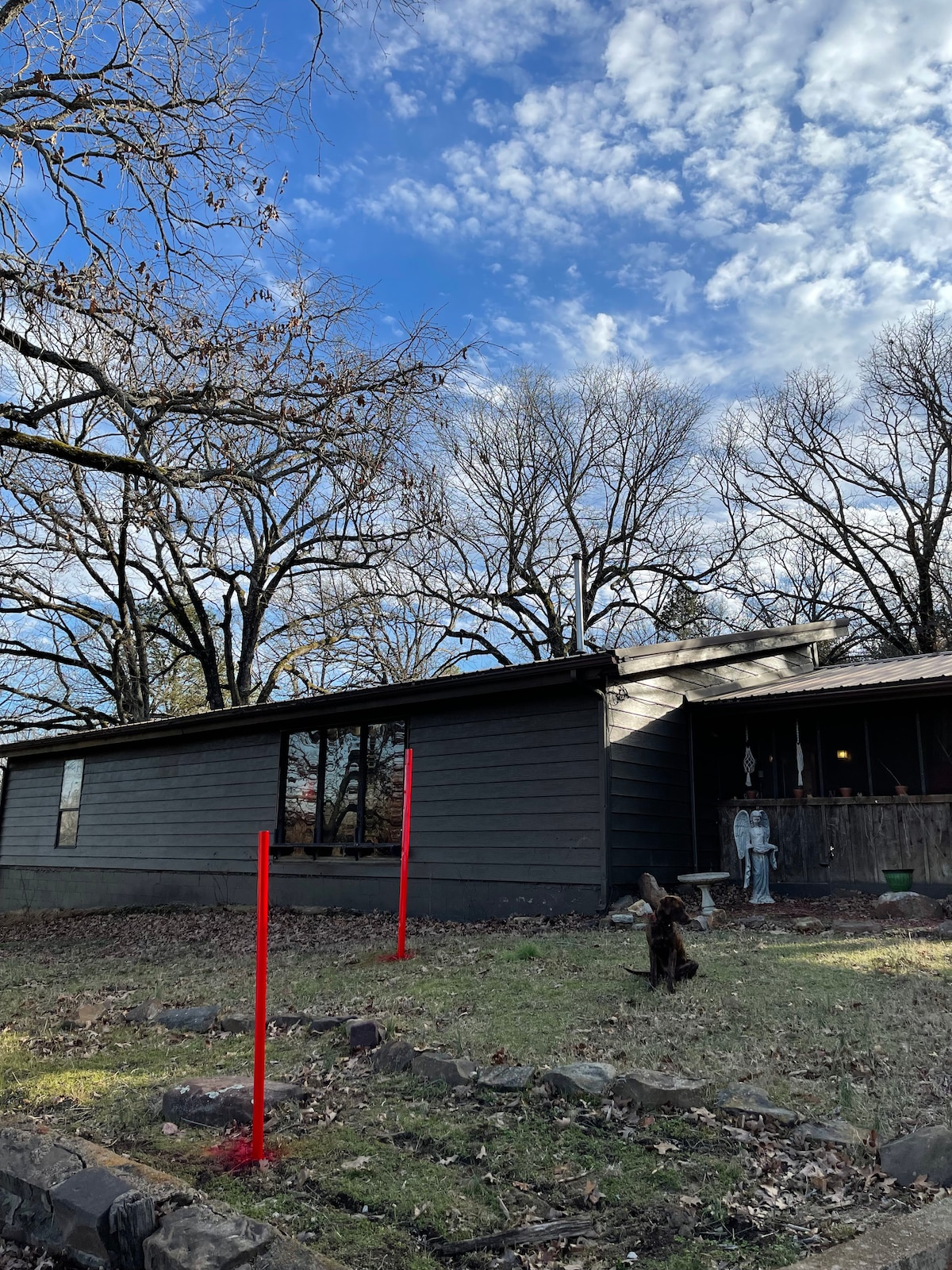 Detta unika boende har en helt egen stil. Beläget 1 mile utanför Crowder och 3 minuters bilresa från Crowder båtramp. Det stora däcket har en sittgrupp, gasolgrill och bubbelpool. Njut av 6 miles sjöutsikt på däcket och eldgropen på framsidan. Vardagsrummet med välvt tak ger en mysig känsla till stugan. Beläget 45 minuter från Robbers Cave, 10 minuter från Arrowhead Golfbana och 15 minuter från Yogi Bears Jellystone park. En bra Airbnb-destination för fiskare och jägare också.