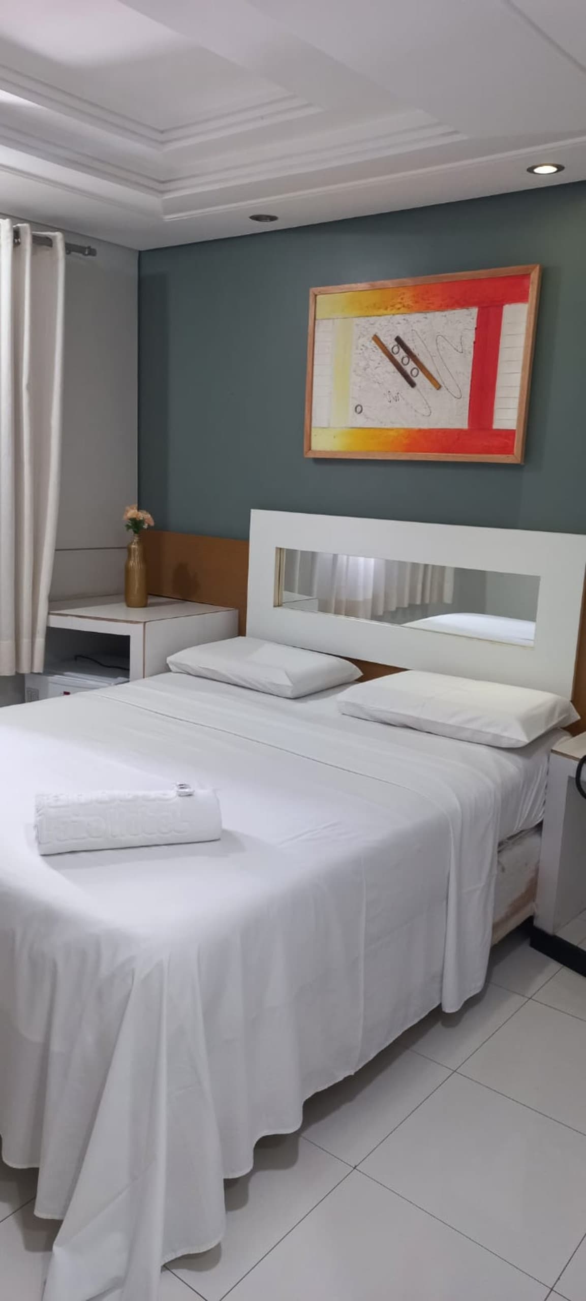 lägenhet, sängbox, luftkonditionering, TV, wi-fi, telefon, minibar Elevador, närbutik dygnet runt Bredvid centrum, bredvid bageri, bensinstation, pizzerior, restauranger. Vi har en pool, bastu, grönområde på hotellet, mini-akademi Frukost debiteras separat för 35 BRL per person Inklusive 01 veckostädning med byte av sängfoder, var 03: e dag. Om du väljer mer städning kommer du att debiteras R$ 35,00.