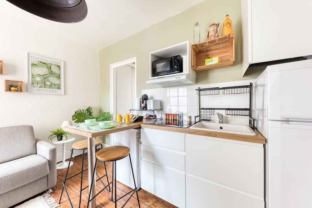 Välkommen till denna eleganta och bekväma ALP Chartres-studio, perfekt för en vistelse för två. Beläget i centrum, 50 meter från biografen och fotgängarcentret, erbjuder det enkel tillgång till butiker och restauranger samtidigt som det är tyst. ✔️ Fullt utrustat kök med tvättmaskin ✔️ Tvättmaskin ✔️ Höghastighets-WiFi ✔️ Säker parkering 3 minuters promenad ingår ✔️ Självincheckning ✔️ Välisolerat boende ✔️ Hanteras av en erfaren lokal värd