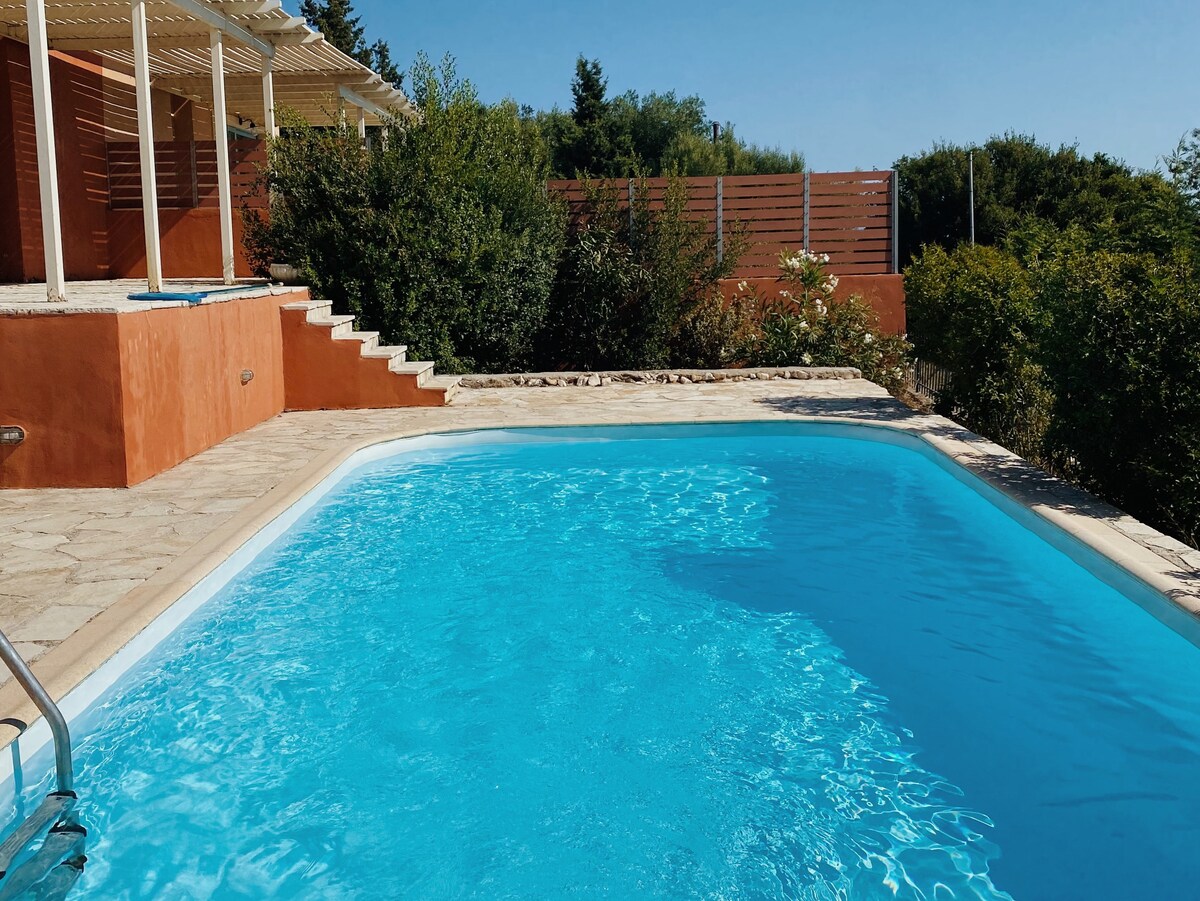 Villa Helios, havsutsikt, privat pool. 5 minuter från Fiskardo