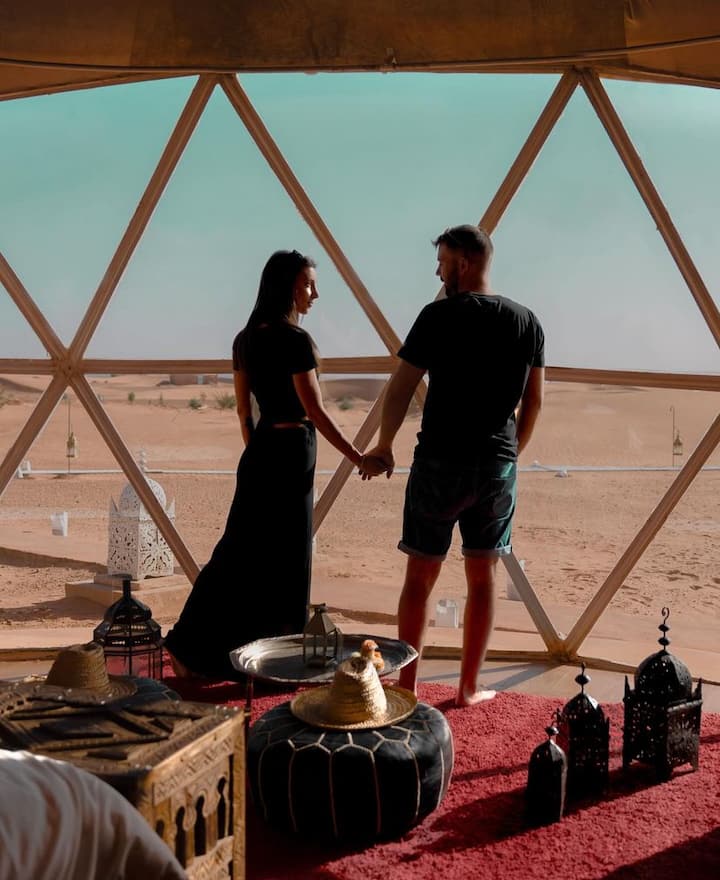 Njut av en romantisk solnedgångsfirande i Agafay-öknen med en symbolisk ceremoni som tillval, perfekt för årsdagar, frieri och förnyelse av äktenskapslöften. Njut av marockanska ritualer, middag, livemusik och mycket mer …
