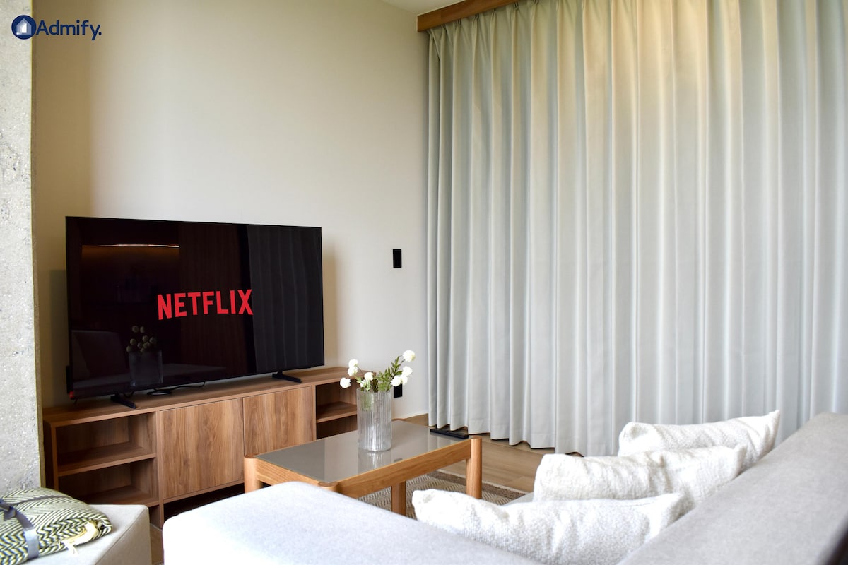 Denna vackra lÀgenhet i Chapalita med minimalistisk och funktionell design Àr utformad för att erbjuda dig en bekvÀm, sÀker och elegant vistelse, oavsett om du kommer för arbete, turism eller vila. Bara 2 minuters promenad till Expo Guadalajara. HÀr finns 2 sovrum, utrustat kök, vardagsrum, matrum, badrum, Smart TV, höghastighets WiFi, tvÀttmaskin och privat parkering. LÀgenheten erbjuder ett gym, taktrÀdgÄrd med spektakulÀr utsikt, coworking, sociala utrymmen och sÀkerhet dygnet runt.