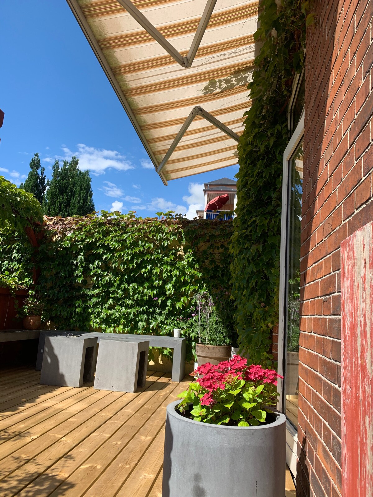 Att bo i vår 75 kvadratmeter stora semesterlägenhet ger våra gäster en mycket speciell känsla av semester. När du öppnar dörrar och fönster strömmar ljud in från skogen, trädgården och havets fåglar. En doft av frisk havsluft möter näsborrarna. Även ljuset upplever våra gäster som något alldeles speciellt. Särskilt när kvällssolen skickar sina strålar ner på de omgivande öarna, måste man nypa sig i armen för att se till att man inte drömmer.