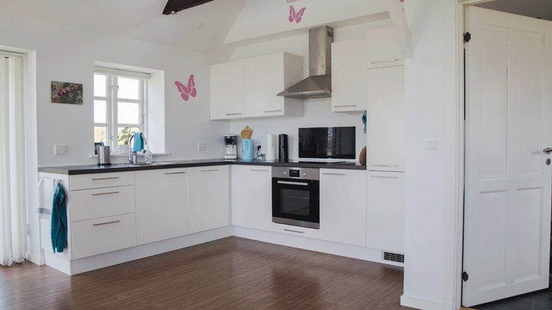 Idylliskt halmtakshus på landet, nära Svendborg