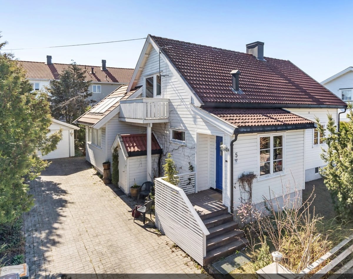 Velholdt hus i fredelig nabolag med god atmosfære og i umiddelbar nærhet til både sentrum, sjøen og skogen, strender, golfbaner og turstier. Kun 10 minutters gange til brygga og sentrum. 3 soverom og en stor terrasse rundt huset med gassgrill, og hagemøbler. I stuen er det 75» TV med flere strømmetjenester og de fleste kanaler, stor sofa og en nybygget peis. På soverommene sover dere i komfortable dobbeltsenger i god kvalitet. Nytt kjøkken med alt nødvendig utstyr.