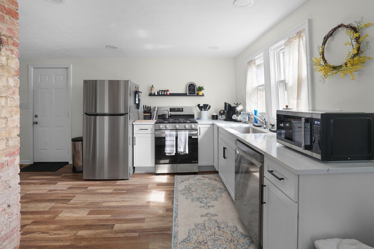 Contemporary, clean carriage house on a large East Indianapolis property. Private keypad entrance with easy self check-in and on-site parking for up to two cars. Comfortably sleeps the whole family with a king bed and a stylish queen-size sofa bed. Important details: • No parties or events • Local guests require prior approval • Early check-in available for $35 (when possible) • $20–$40 linen fee for use of sofa bed