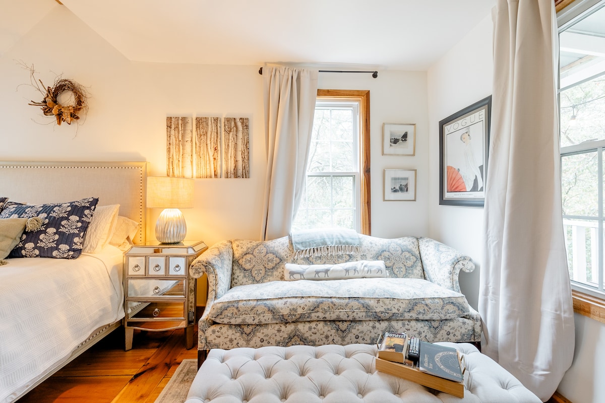 Fly livets bekymmer på den privata verandan med ljudet av bäcken nedanför. Njut av en chic stuga som är fylld med speciella detaljer, inklusive ett porslinsbadkar, lokalt tillverkad keramik och charmiga Nashville-accenter. Vi har nyligen lagt till en andra stuga med ett sovrum och eget badrum med egen ingång från verandan. För gäster som är intresserade av att boka båda enheterna, vänligen skicka ett meddelande till oss för tillgänglighet! Queen size säng, vardagsrum, täckt veranda, parkering, liten matplats, kök inkluderar kylskåp, handfat, mikrovågsugn, apparater och induktionshäll. täckt matsal/pergola bredvid bäcken, pack-and-play tillgänglig på begäran Ägare tillgängliga via telefon under din vistelse, ofta kommer vi att välkomna dig vid ankomsten om dina resplaner delas med oss. Pasquo Cottage ligger på sluttningen av en 5 tunnland stor fastighet, bredvid ett 200 år gammalt hem som fungerade som ett sjukhus i inbördeskriget. Den ligger i den västra kanten av Nashville, utanför Highway 100 och Sneed Road. Det berömda Loveless-kaféet ligger 1,5 km bort. Vi är 15 minuter från centrala Franklin, 25 minuter till Leaper's Fork, 15 minuter till Green Hills, 20 minuter till Downtown, 30 minuter till Fontanel. Livsmedel, Starbucks och restauranger ligger mindre än 5 minuter bort i Bellevue. Och glöm inte Loveless Cafe! Vår restaurang som ligger närmast huset är världsberömd för sina kex, sydlig mat, grillning och butiker. Uber/Lyft tillgängligt.
