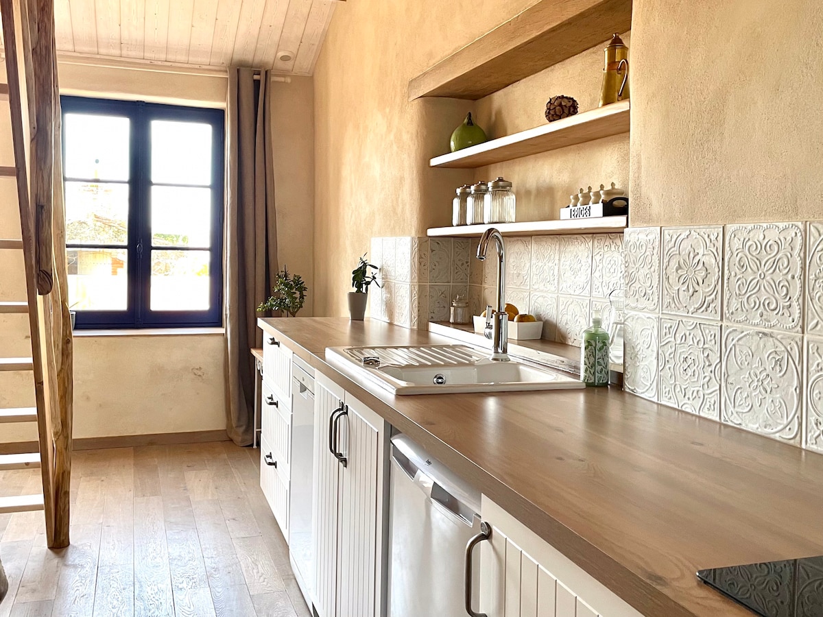 Studio de 30m² à 30 minutes de la mer. La cuisine est intégralement équipée (four, micro-ondes, lave vaisselle, lave linge...). La chambre comporte un lit 2 places et le clic clac dans la pièce de vie permet de loger confortablement 2 personnes supplémentaires. La salle de bain récente et les toilettes sont séparées. Le linge de lit et le linge de toilette sont fournis. L'extérieur privatif est entièrement clos, un barbecue et salon de jardin sont à disposition pour les beaux jours.