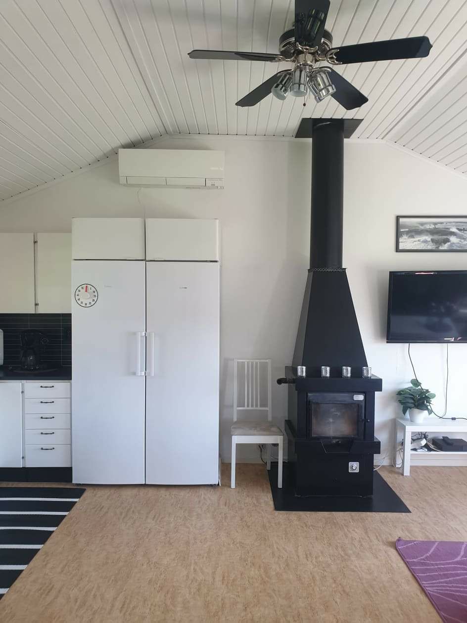 Bara 10 minuter från Skellefteå ligger vår gäststuga som är ljus, luftig och inbjudande! Hund är välkommen men inte katt p g a allergi. Stugan har stora fönster mot horisonten och är inredd med det man behöver. Här sover du i en bäddsoffa som är 140 cm bred, på en tjock resårmadrass. Från den har du också utsikt mot piren från vilken modiga gäster brukar ta sig ett dopp. Önskas ett separat sovrum så fråga! För det mesta kan vi ordna det! Det ligger vägg i vägg med en säng 160 cm bred.