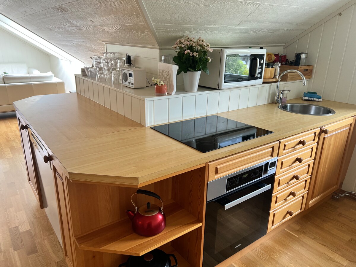 Vindsvåning, 24 kvm. Lugnt grannskap och trevlig utsikt Inklusive te och kaffe Gratis tillgång till Wifi och Netfix. När du anländer till Bergen, kan vi träffas efter överenskommelse. Användning av tvätt- och torktumlare - kostar NOK. 50 varje tvätt ( tvål ingår ). Om vår parkeringsplats är gratis kan du parkera bilen i vårt ställe. Annars är du ansvarig för att hitta en parkeringsplats på egen hand.