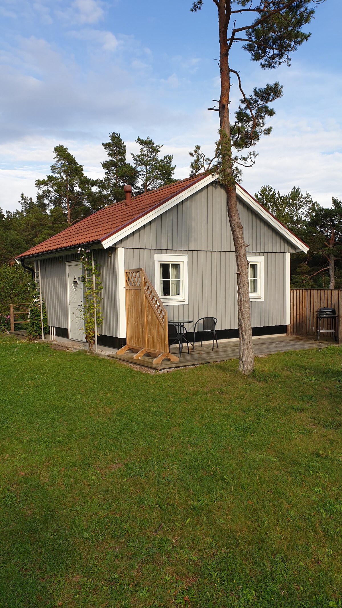 Mysig gäststuga med orangeri nära havet
