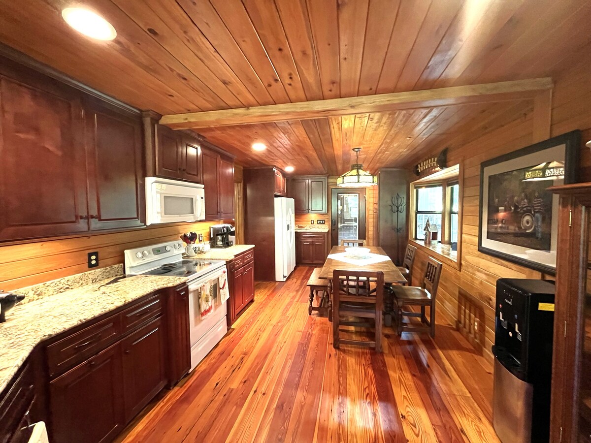 En fridfull vistelse väntar dig när naturens skönhet överväldigar och äkta integritet omger på flera hektar mark. Bo i denna avskilda timmerstuga, som inkluderar en fylld damm och glittrande pool. Bara en kort bilresa till I-75 eller till stan. Grindad ingång som leder dig nerför en asfalterad väg som öppnar upp till en stor, välskött gräsmatta och damm med stugan i bakgrunden. Själva stugan har exponerade balkar och rustik skönhet. Den omslutande verandan har en härlig utsikt över dammen och poolen. Minnen väntar;)