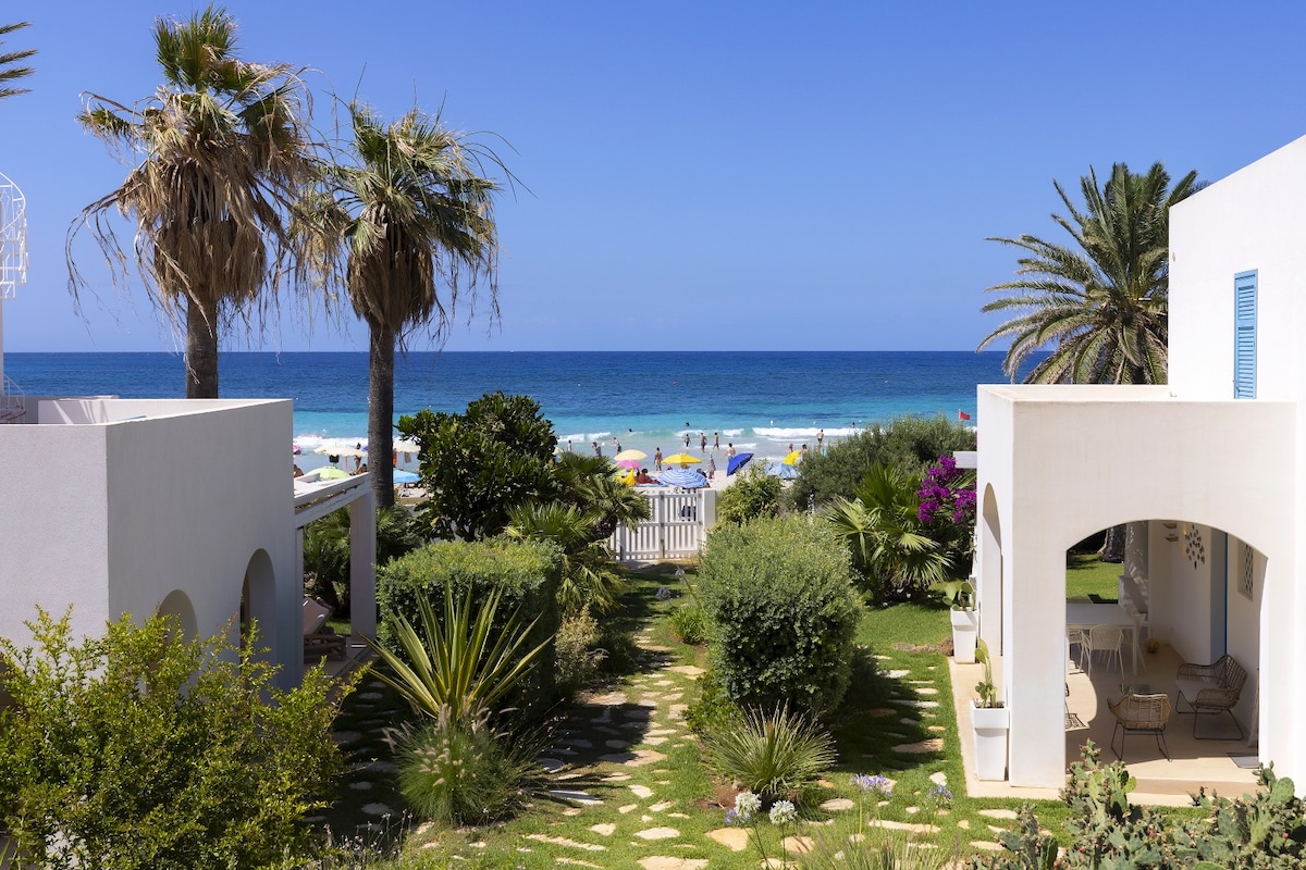 Villa "Sul Mare Vista Tramonto" ligger i Cornino, bara några steg från stranden. Boendet består av tre fristående hus vid havet, som täcker totalt 3 000 m², med en 200 m² övre terrass med utsikt över vattnet. Ägarna bor i ett av husen, men alla enheter är fristående, var och en med en privat trädgård och rymliga uteplatser. Villan på 85 m² har ett vardagsrum, ett fullt utrustat kök, två sovrum och ett badrum, som rymmer upp till fem gäster.