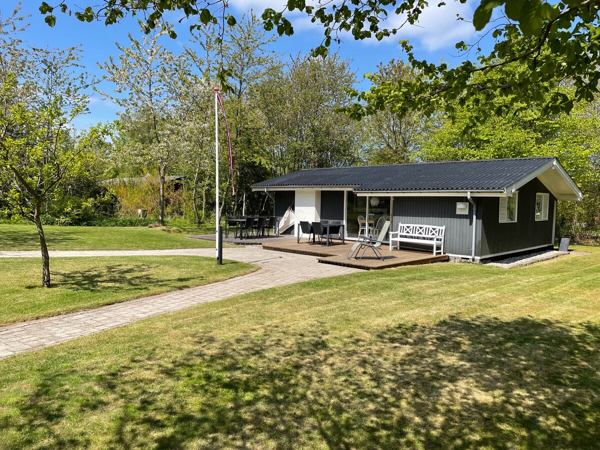 Stuga vid vattnet, i ett lugnt område. Hus på 60 m2, med sovrum (dubbelsäng 160x200 cm). Nyare badrum, kök med matplats och vardagsrum med hörnsoffa. TV-apparater kan användas via Google Chromecast (det finns INGA TV-kanaler installerade på TV:n). Huset värms med en värmepump (luft till luft). Wifi inomhus. Staden har två livsmedelsbutiker (Netto & Super Brugsen), pizzeria, café och restaurang. Trevlig brygga vid stranden. Sängkläder med nytvättade sängkläder. En badhandduk tillgänglig per gäst.
