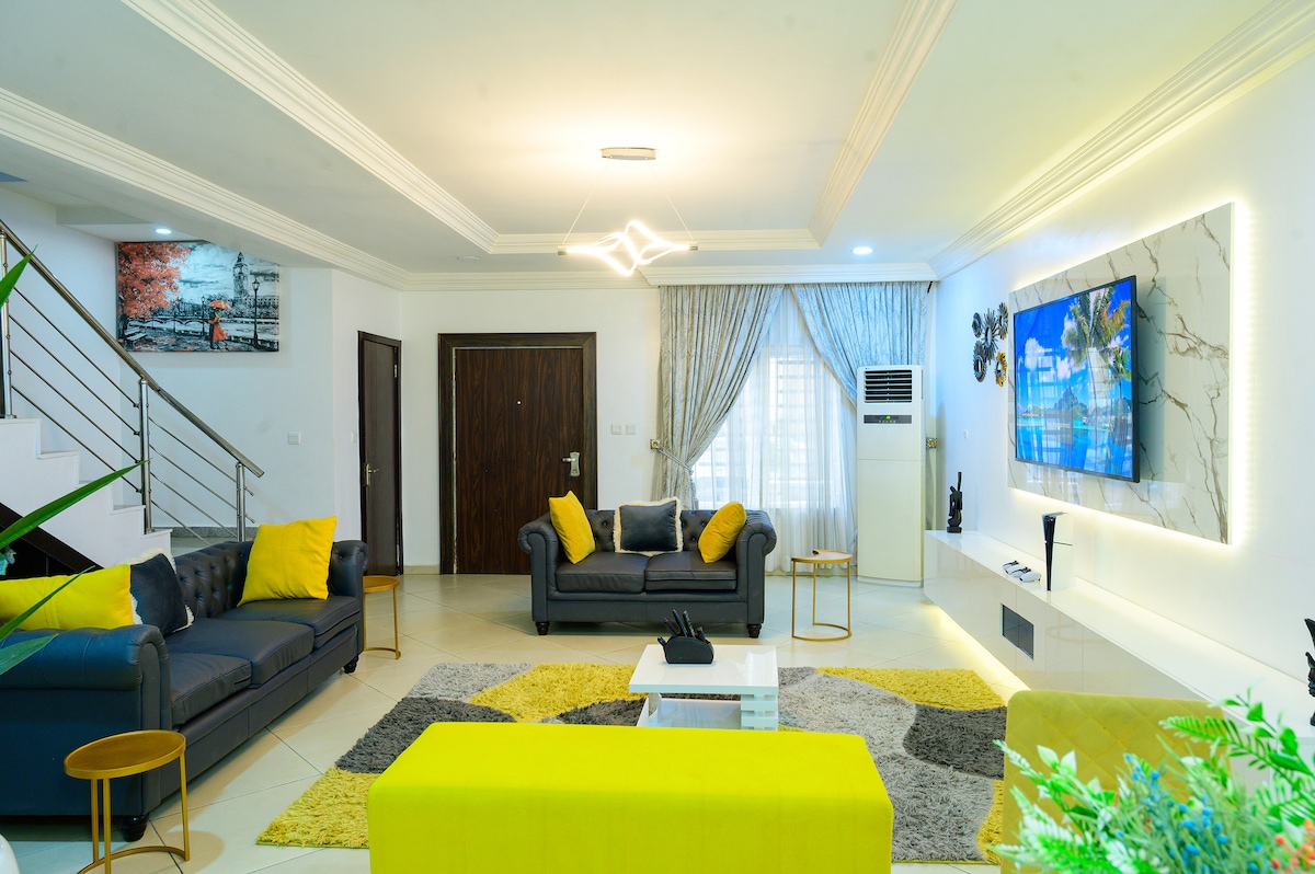 Bo i denna eleganta lägenhet med 3 sovrum i en privat duplex i Jahi, Abuja, som ligger i ett lugnt och säkert område. Perfekt för affärsresenärer, familjer och längre vistelser – det erbjuder komfort, avskildhet och enkel tillgång. Njut av Netflix, spel, snabbt wifi och el dygnet runt i ett professionellt förvaltat boende. Bekvämligheterna inkluderar daglig städning, ett utrustat kök med grundläggande matlagningsutrustning, hög säkerhetsnivå, en första hjälpen-låda, plus upphämtning på flygplatsen som tillval och en egen kock på begäran.