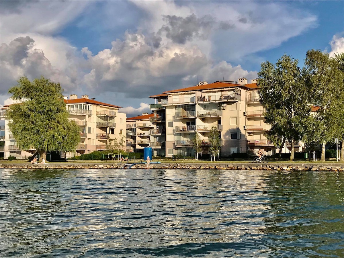 Apartment with full panorama directly on the shore of Lake Balaton in a quiet, spacious residential park. It is located in the most beautiful, calm, family area of the golden coast of Siófok. It is an excellent place for rest, relaxation and sports. We recommend it to anyone who appreciates the unparalleled view, the comfort of being on the beach after a few steps, the stunning sunsets and the carefree relaxation in the safe and tidy surroundings of this area.