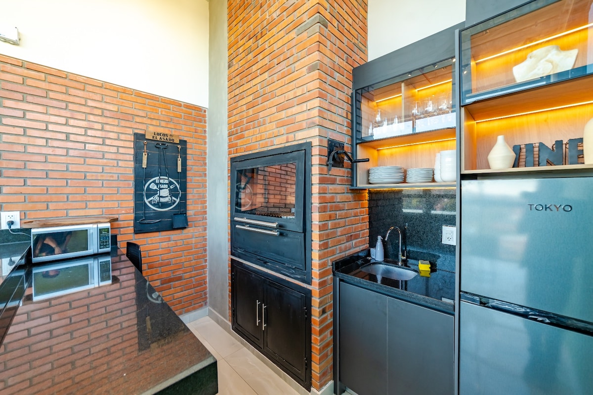 Elegant helt ny lägenhet, fint inredd och fullt utrustad för att få ut mesta möjliga av din vistelse. Idealiskt beläget i Villa Morra, några steg från Shopping Villa Morra och Mariscal, vilket gör det till ett bekvämt alternativ för den som är ute efter en byggnad i en kategori i mitten av Asunción. Lägenheten är helt ny, har alla redskap och apparater samt en 65-tums TV med kabel och höghastighetsinternet.