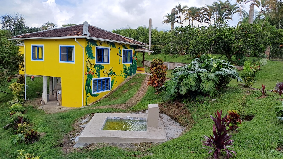 Fly till ett lanthus omgivet av naturen och tystnaden, bara 5 minuter från Filandias huvudpark. Njut av kvällar vid lägerelden, kaffelandskap och rymliga utrymmen att dela med familj eller vänner. En designad tillflyktsort mitt i det colombianska kaffelandskapet. Upplev lugn och natur i dess renaste form. Njut av en panoramautsikt över skogen och dalarna i Quindío. Oförglömliga soluppgångar, stjärnklar himmel och magiska solnedgångar