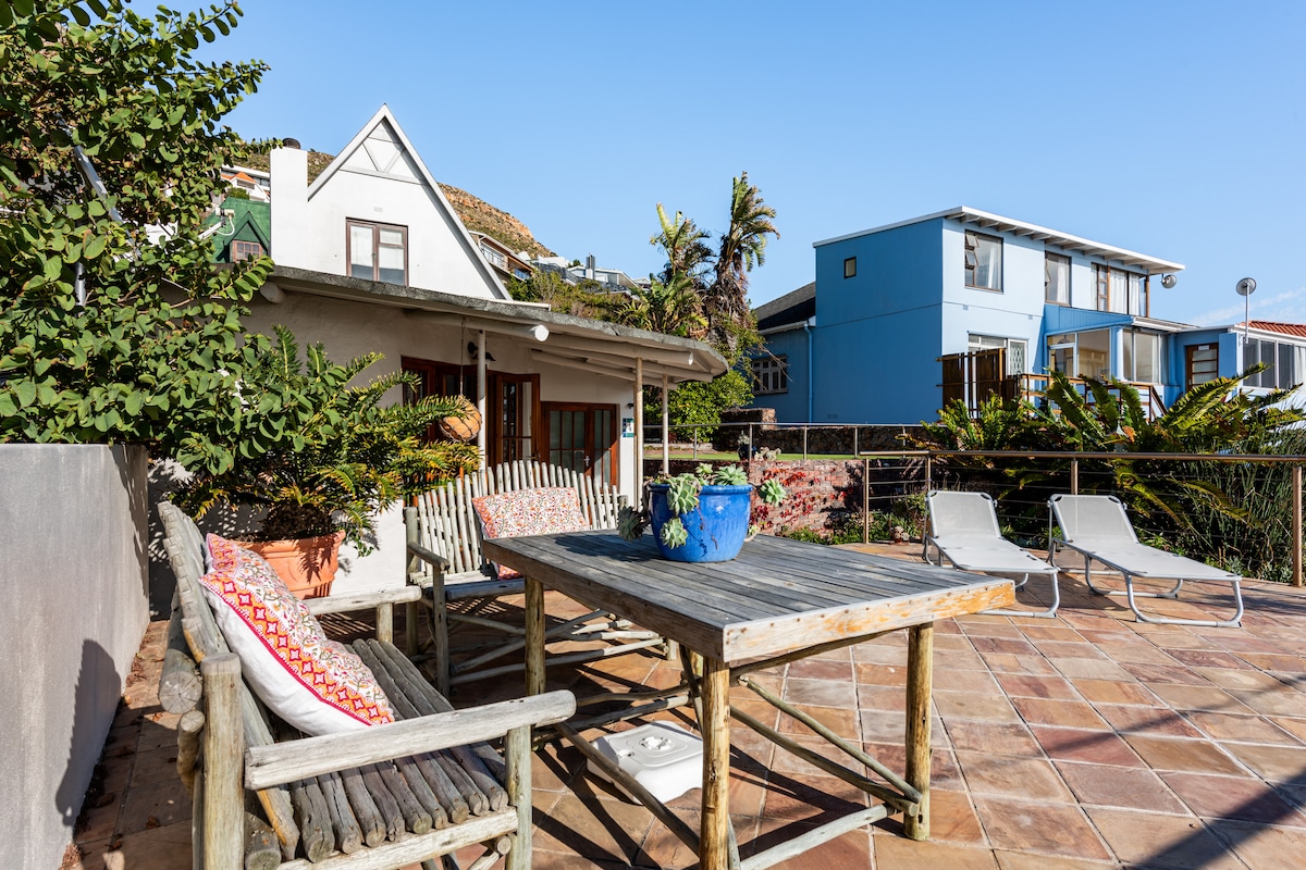 En unik lyxfastighet med den bästa utsikten över kusten - havet på ena sidan och berget på den andra. Ett rymligt loft under takbjälkarna i en solid och charmig edwardiansk bungalow. Solbelyst, rymligt, elegant och bekvämt. Toppen sängar, 100 % bomullssängkläder, lyxigt badrum, utrustat kök. Fem minuters promenad från byn, och från Kapstadens bästa bad, och ändå privat och fridfullt, hängande ovanför allt! Med utmärkt wifi välkomnar vi digitala nomader och semesterfirare!