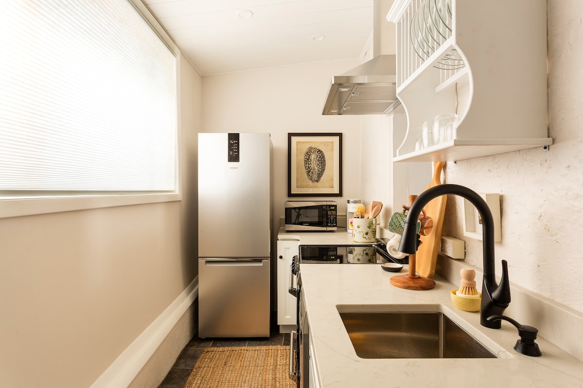 - Kompact, blygsamt privat utrymme med mikro balkong, ingen utsikt - Entrén tenderar att vara bullrig, särskilt på natten - Helt privat inget delat - Möblerad med IKEA, inredning av Goodwill - TRAPPOR 2:A VÅNINGEN!!! - ENDAST hundavgift 10 dollar/natt per hund - INGA KATTER INGA KATTER INGA KATTER - SmartTV, HuluLive, Netflix, Prime, Disney, AppleTV - Gångavstånd till allt säkert - Gratis parkering på gatan eller betald 10 dollar/dag - Anne's Deli bredvid mån-lör 07:00-22:00, sön 08:00-17:00 - Tidig/sen in-/utcheckning 13:00 20 USD