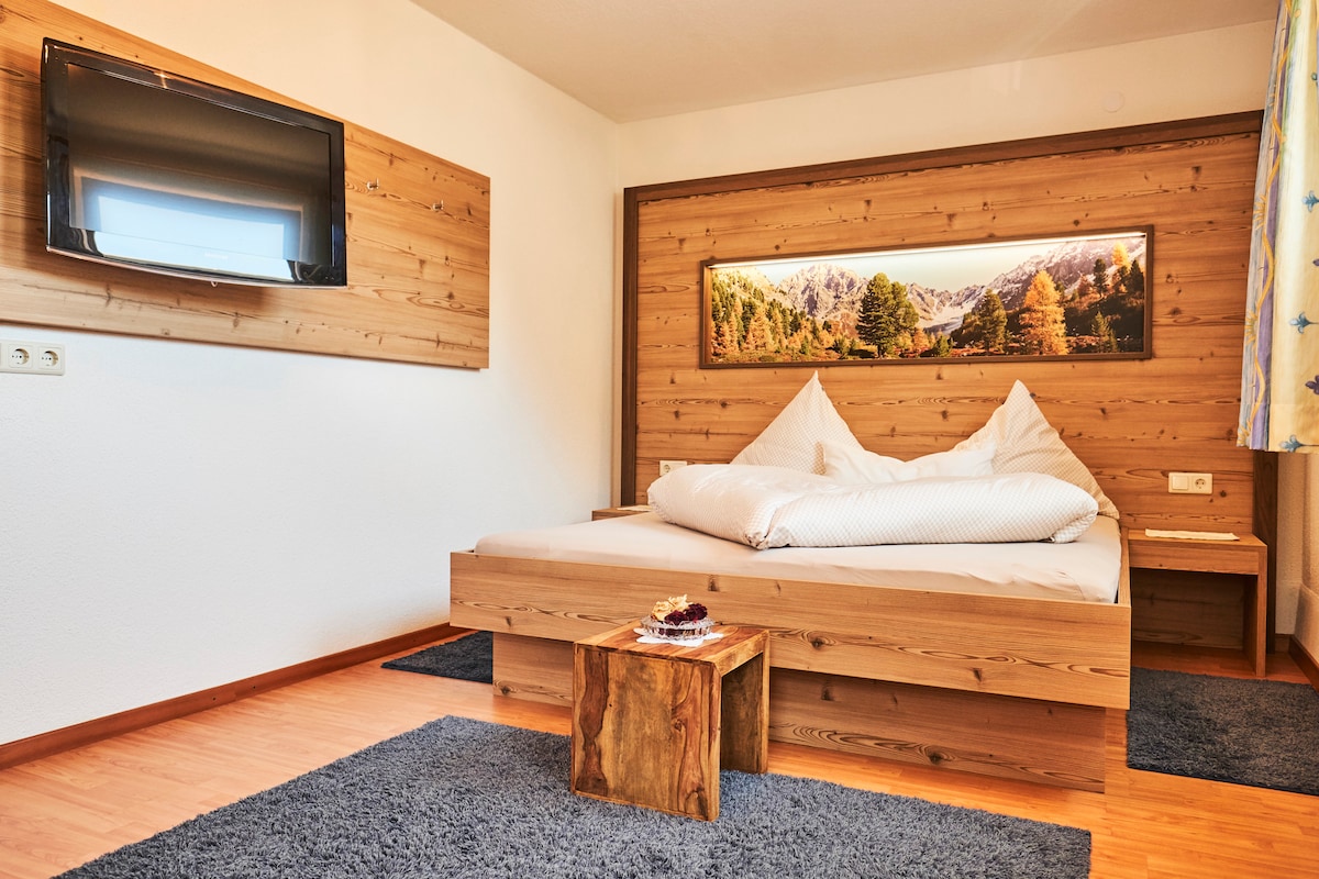 Denna mysiga lägenhet på 2:a våningen i pensionatet Goldeck ligger bara en minut från alpina lägenheter. Perfekt för 2-4 personer med naturträmöbler, våningssäng (160*200), bäddsoffa (180*200) och fullt utrustat kök. Gratis Wi-Fi, kabel-TV och radio-CD-spelare ger underhållning. Separat sovrum, badrum, toalett och garderob erbjuder komfort och avskildhet. Njut av den friska luften på den lilla franska balkongen och upplev charmig omgivning.