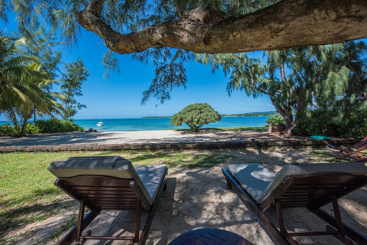 Det är en mysig 2 sovrum strandlägenhet pied dans l'eau i en av de vackraste vikarna i Mauritius. Om du njuter av att bada, snorkla i kristallklar lagun, kitesurfa eller njuta av soluppgången eller månuppgången är stället perfekt för dig! Det är 15 minuter till ile aux Cerf, en pittoresk ö känd för sina vita sandstränder. Lägenheten är mysig och familjevänlig.
