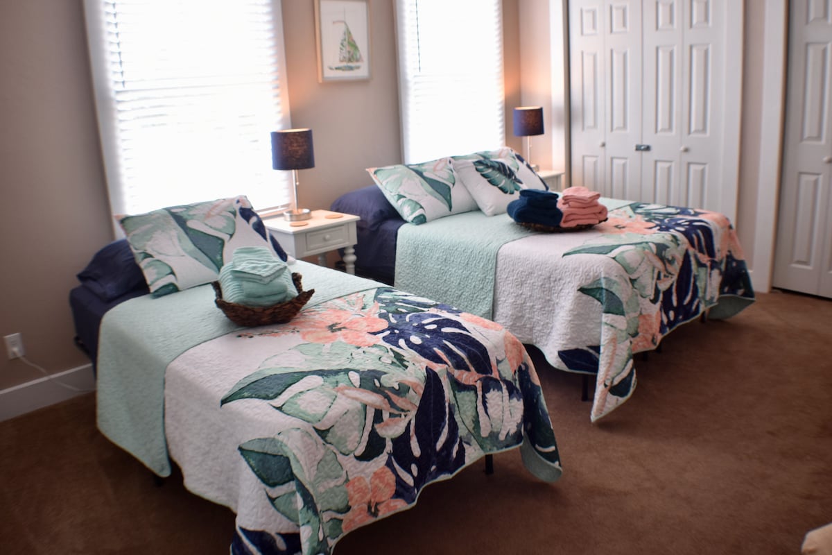 Detta boende i St. Augustine ligger mitt i hjärtat av pittoreska och historiska centrum! Den mysiga lägenheten på övervåningen med en dubbelsäng i det stora sovrummet med bad och dubbel- och enkelsängar i det andra sovrummet med bad är perfekt för 1-5 gäster. En kort 8-10 minuters promenad gör det möjligt för besökare att utforska de många centrala historiska platserna, museer och restauranger. Gratis parkering för en bil på vår parkering. Det finns gratis gatuparkering för ytterligare bilar (förutom från 15 november till 11 januari Nights of Lights).