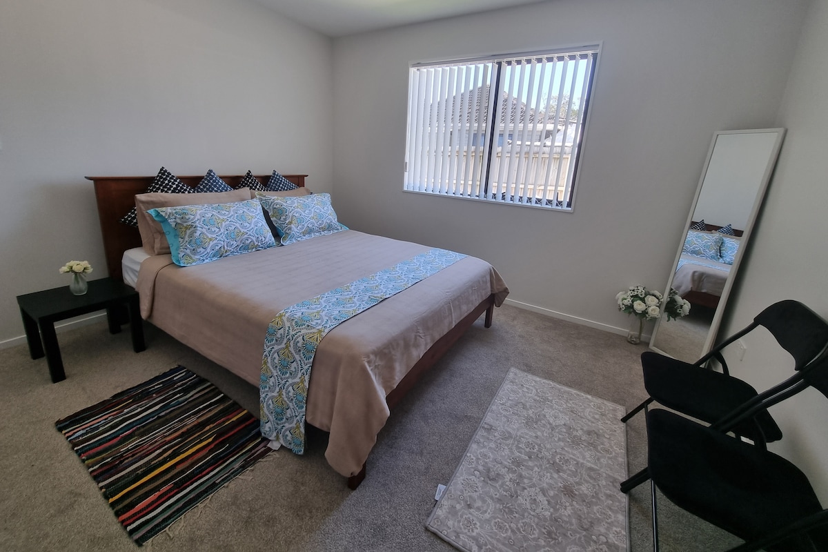 Spacious upstairs unit with private entrance in a peaceful 5,800 m² garden setting in East Tamaki Heights. A quiet escape just 3 mins from Botany Town Centre and 25 mins from Auckland Airport. Features a fully equipped kitchenette, fast fibre WiFi, two large double comfy beds, and free parking. Perfect for couples, families, or business stays looking for comfort, space, and convenience. Two free parking spaces. Relax and enjoy the space, privacy, and views in this tranquil garden setting.