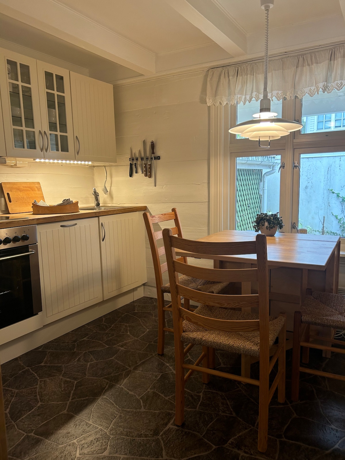 🏡 Skipperhuset är det äldsta huset på vår familjegård Birkenes, som ligger i Farsunds kommun. Skipperhuset byggdes på 1800-talet och har renoverats flera gånger, senast våren 2021. I samarbete med ett lokalt måleriföretag arbetar vi för att göra huset så autentiskt som möjligt, bland annat genom att tapetsera vardagsrummet, köket och korridoren med skepparhus tapeter och linolja färg för att bevara trä, etc. Skipperhuset har en naturlig plats på gården och är vägg i vägg med bryggeriet som har en renoverad ugn.