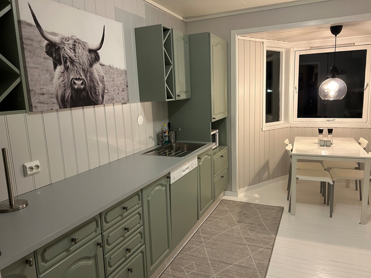 Stor lägenhet. Downtown. Möjlighet till båtuthyrning för havsfiske. Laxflod i närheten. Natursköna omgivningar med härlig trädgård som måste upplevas! Här kan du koppla av inomhus eller utomhus, och kanske ta en grillmåltid på en av våra terrasser med kycklingar och ankor. Floden Sokna löper precis förbi trädgården. Här kan barnen simma, och vi har en laxrätt här. Ruggesteinen och Linepollen badplats med sandvolleybollplan ligger 2 minuters bilresa från vårt hus. 5 min med bil till Knee Raceway.