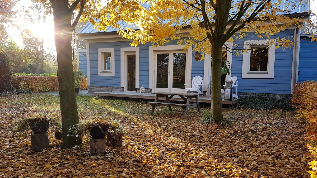 Välkommen till vår mysiga skandinaviska skogstuga: ett modernt boutique litet hus (41 m²), byggt med många naturmaterial. Du vaknar med utsikt över skogen och har bastu och jacuzzi för dig själv. Här kan du varva ner helt, medan Amsterdam och Utrecht ligger nära för dagsutflykter. • Rymlig utomhusjacuzzi med massagejetstrålar (±38 °C, året runt) • Lyxig bastu inomhus • 30 minuter från Amsterdam och Utrecht • 't Gooi och dess naturreservat inom ±30 min. • Luftkonditionering tillgänglig