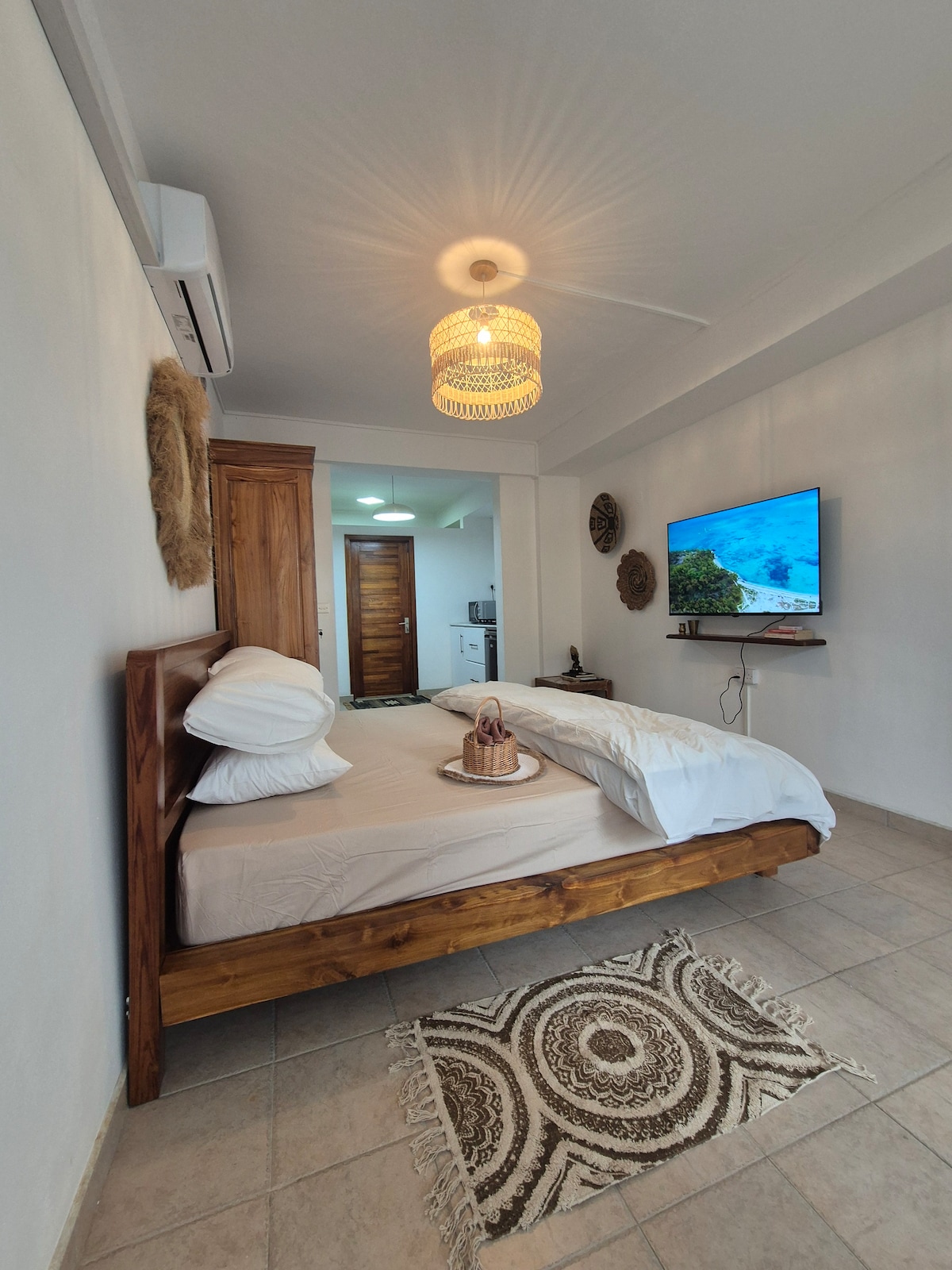 Njut av en elegant kustretreat med en lugn atmosfär och en vacker panoramautsikt över havet. Denna moderna studio erbjuder ett fullt utrustat kök, ett mysigt och elegant vardagsrum, en queensize-säng med mjuka sängkläder och ett fantastiskt badrum. Höjdpunkten i utrymmet är den privata balkongen med havsutsikt, där du kan koppla av, varva ner och beundra den gyllene solnedgången över havet. Perfekt för par och ensamresenärer som söker komfort, stil och en lugn vistelse vid havet.