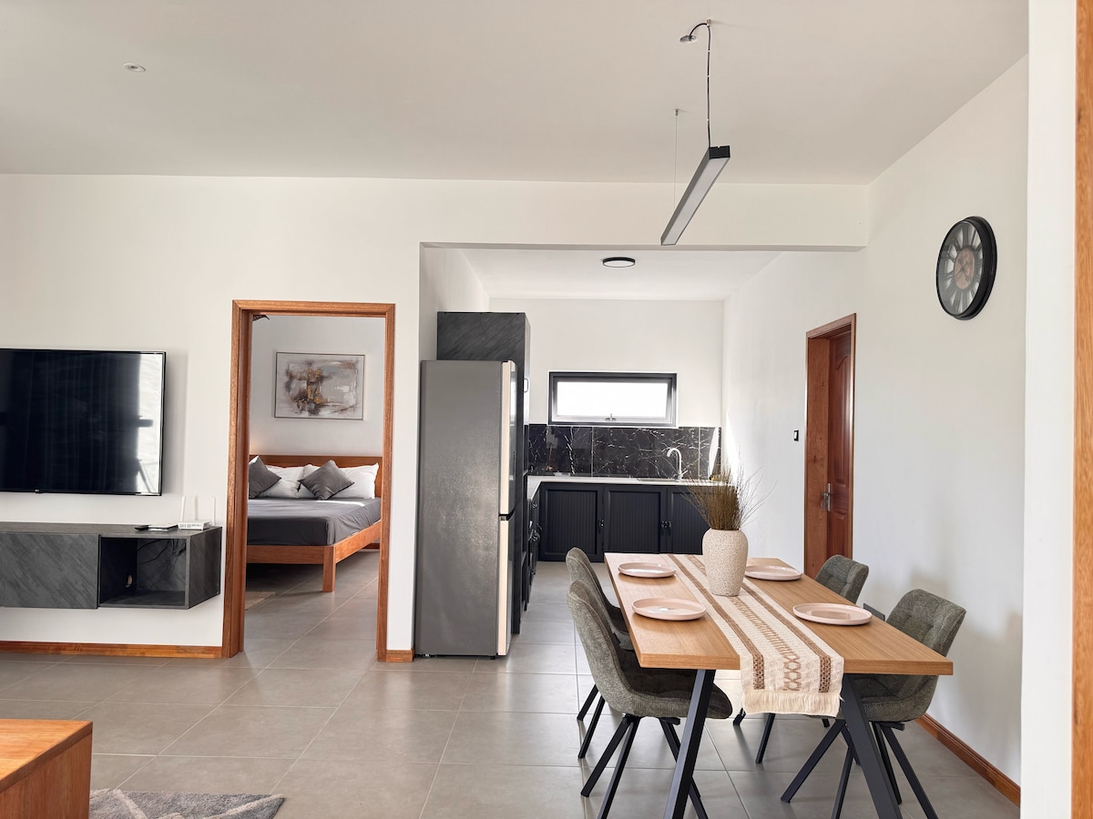 ✨ Modern lyxlägenhet 5 minuter från Flic en Flac Beach 🏖️ Njut av 🛏️ 2 mysiga sovrum, ett dedikerat kontor💻, 🍳 fullt utrustat kök, 🚿 elegant badrum med separat toalett och ett ljust vardagsrum som 🛋️ öppnar mot en rymlig terrass 🌅. 🚗 Säker parkering ingår. Idealiskt beläget nära butiker🛍️, restauranger🍽️, bageri🥖, klinik 🏥 och busshållplats🚏. Perfekt för en avkopplande flykt, distansarbete eller öäventyr🌴.