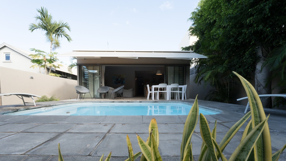 Upplev den ultimata ön tillflyktsort i vår nyrenoverade, mysiga lägenhet bara 5 minuter från Flic en Flac strand, affärer och restauranger. Hoppa in i dina flip-flops och omfamna den avslappnade ö-livsstilen. Med 3 luftkonditionerade sovrum, 2 stora pooler och en barnpool är det perfekt för familjesemester. Allt du behöver finns precis utanför dörren. Boka nu och njut av det bästa av tropiskt boende!