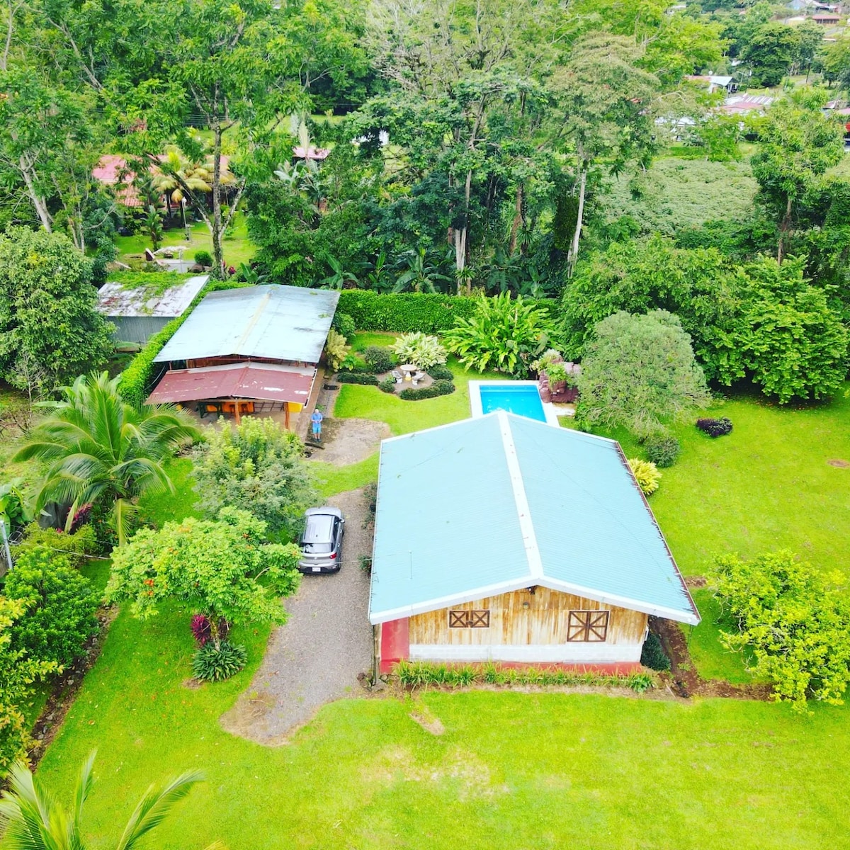 Privat hus. 3 sovrum 2 fulla badrum VARMT vatten. Kök, matsal, vardagsrum. Privat uppfart och parkering. Luftkonditionering. Veranda. Starkt WIFI. Målningar av lokal konstnär. Inbäddat i ett privat naturreservat. Groda! Blue- jean, Red- eyed, Gaudy. Scarlett Macaws. Tukaner. Sitt på bryggan i lagunen, ta en fridfull promenad på de många bäckarna, ta en spännande nattvandring, eller be Maricel att lära dig om de medicinska växterna. Perfekt stopp från San Jose till La Fortuna 702.